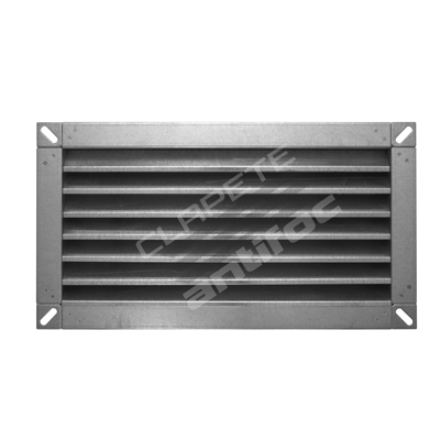 - Grila de exterior din otel zincat resistenta la intemperii, cu lamele antiploaie si plasa de sarma cu ochiuri 10×10 este destinata montariipe peretii exteriori ai cladirii.